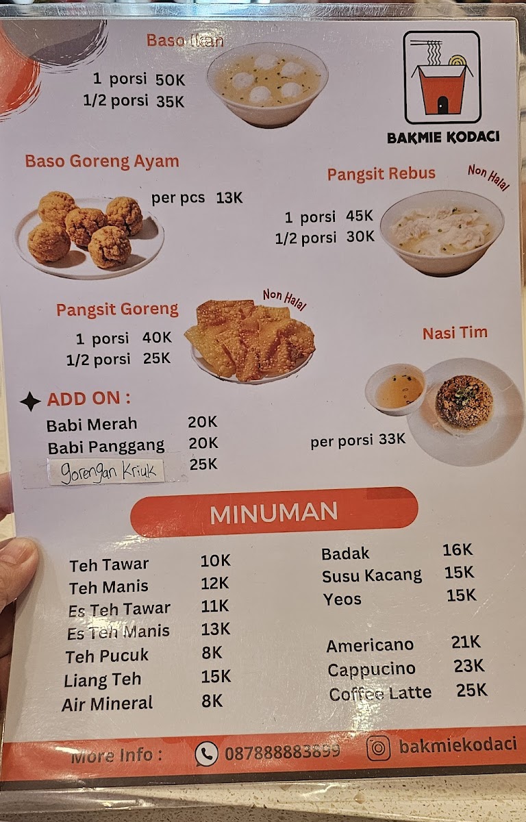 Bakmie Kodaci doesn't just stop at noodles; their menu features a variety of side dishes, including bakso goreng and pangsit in various forms. The cozy, café-like atmosphere adds an inviting touch, making it a perfect lunch spot. Patrons appreciate the luxurious setting paired with effective flavors, making Bakmie Kodaci a must-visit for noodle enthusiasts!
